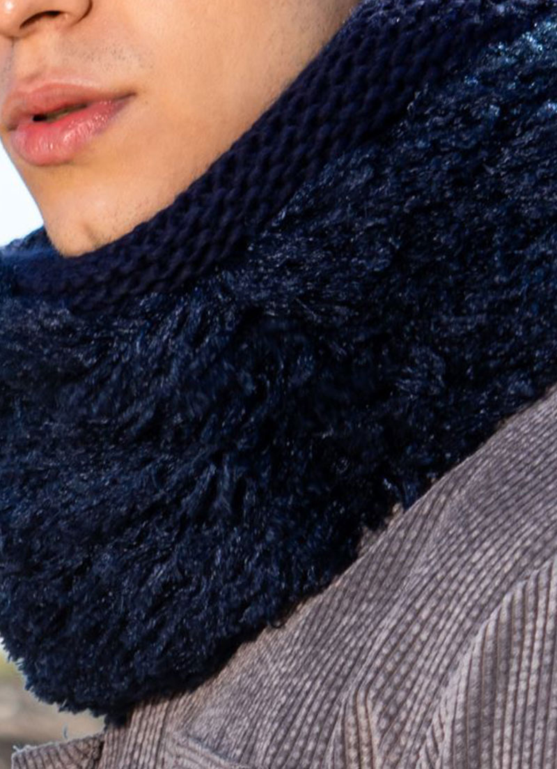 Elevate your winter style with our Blue Fluffy Eco Fur Bliss Snood. This uniquely crafted double-sided snood features a luxurious blue fluffy eco fur exterior that radiates comfort and softness. The interior is lined with cozy blue wool for ultimate warmth and chic style. It’s a must-have addition to your cold-weather collection.