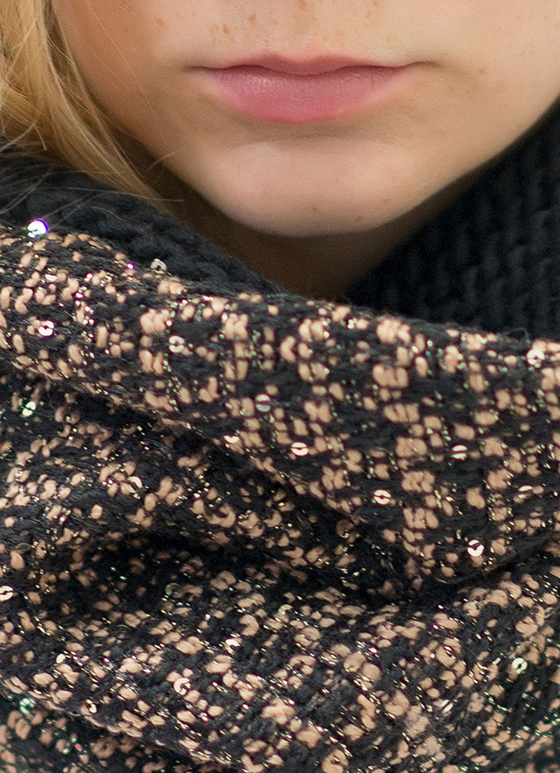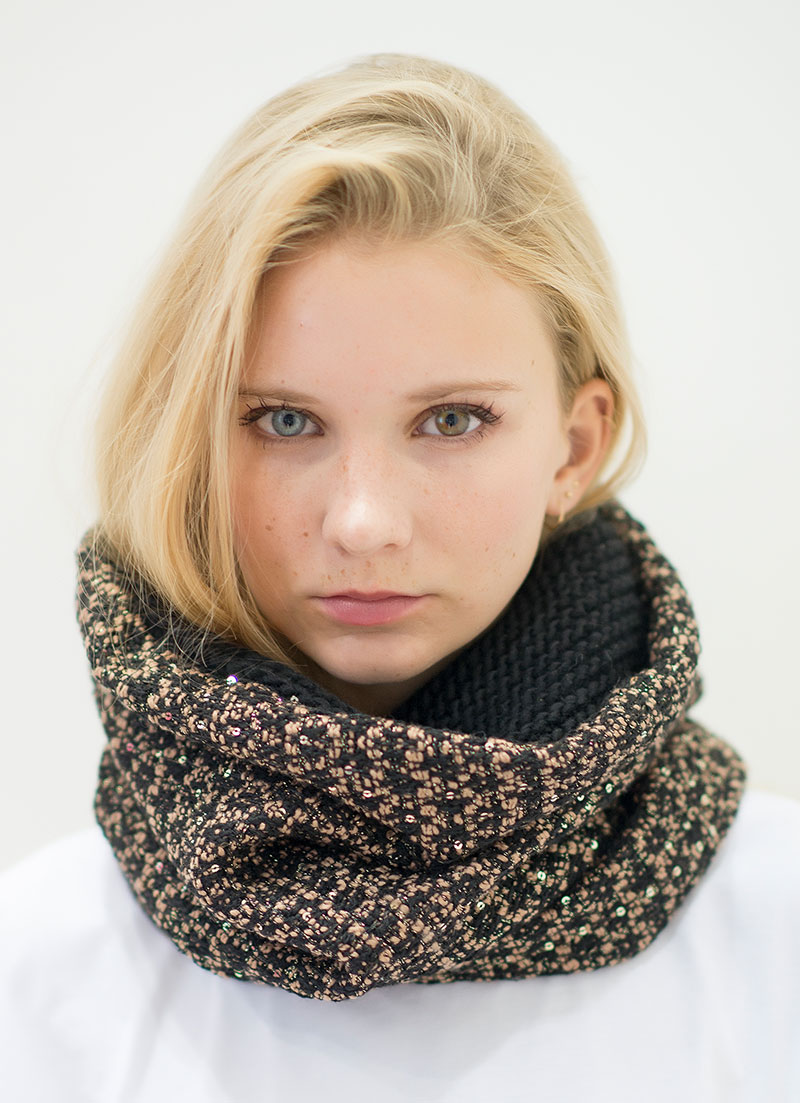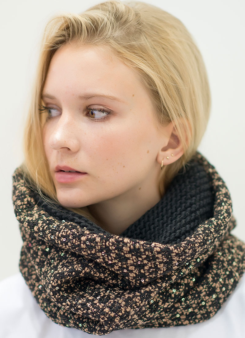 Turn heads in our cold weather accessory. Double sided black knitted snood with a soft touch of gold metallic thread lurex pattern, knitted with a small touch of sequins! The ultimate accessory for this year, will keep you warm and stylish on the coldest of days. A casual classic that everyone should have!
