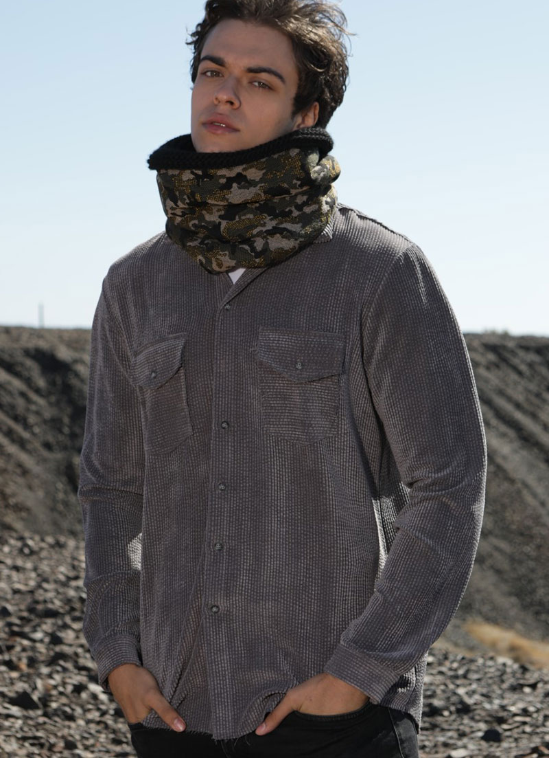 Inspired by the resilience of army attire and the allure of glam fashion, this snood is a must-have addition to your cold-weather collection.