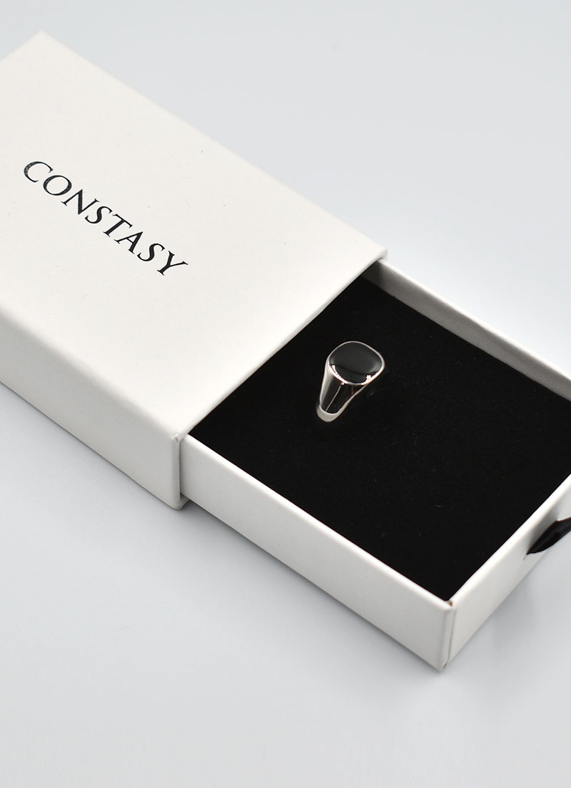 Add a touch of class to your hand with this CONSTASY elegant silver ring with black stone.