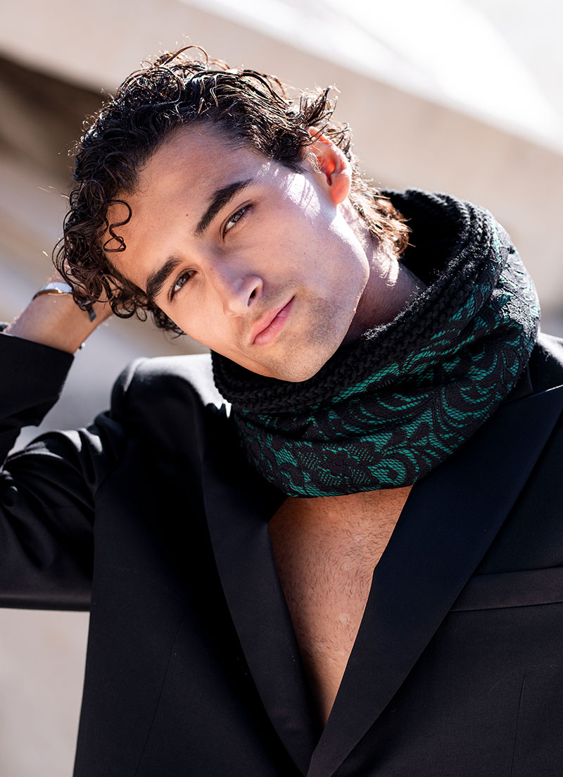 Elevate your winter style with our Emerald Blossom Lace Snood. This uniquely crafted double-sided snood features a delicate black flowers lace pattern, complemented by emerald fabric on one side, and inside cozy black wool for ultimate comfort. It’s a must-have addition to your cold-weather collection.