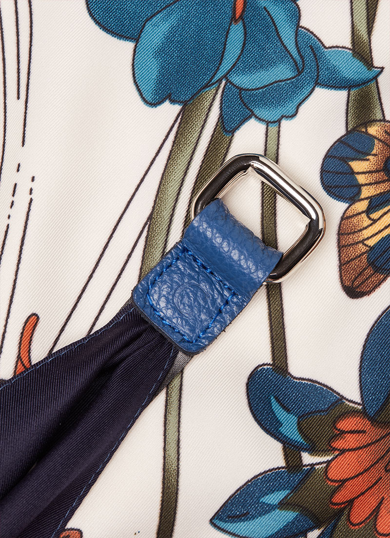 Introducing the Floral Fusion Ballet Silk Scarf, where elegance meets artistic expression. Crafted from luxurious silk, this scarf features a mesmerizing floral print inspired by the grace and fluidity of ballet dancers. Adding to its charm, the Floral Fusion Ballet Silk Scarf boasts a delicate leather ending, providing a touch of sophistication and allowing for versatile styling options. This unique detail elevates the scarf from a mere accessory to a statement piece that effortlessly enhances any ensemble.