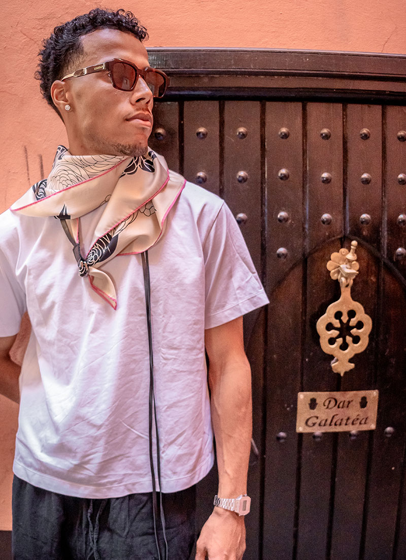 Measuring 90 x 90 cm, it offers endless styling possibilities. Wrap it around your waist as a refined belt, tie it as a scarf or headpiece, or wear it as a top for an effortlessly cool, feminine look. The radiant pink tones bring warmth and vibrancy, making it the perfect accent to elevate both casual and elevated outfits.