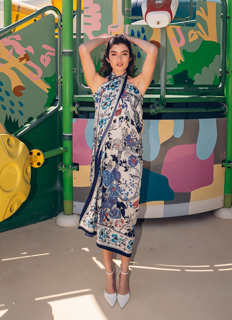 Introducing the Sapphire Symphony Silk Scarf, where elegance harmonizes with sophistication. Crafted from the finest silk, this scarf features a captivating sapphire hue reminiscent of the deep, enchanting notes of a symphony. Enhancing its allure, the Sapphire Symphony Silk Scarf is adorned with a single leather ending, adding a touch of refinement and offering versatile styling options. This unique detail transforms the scarf into a timeless accessory that effortlessly elevates any ensemble.