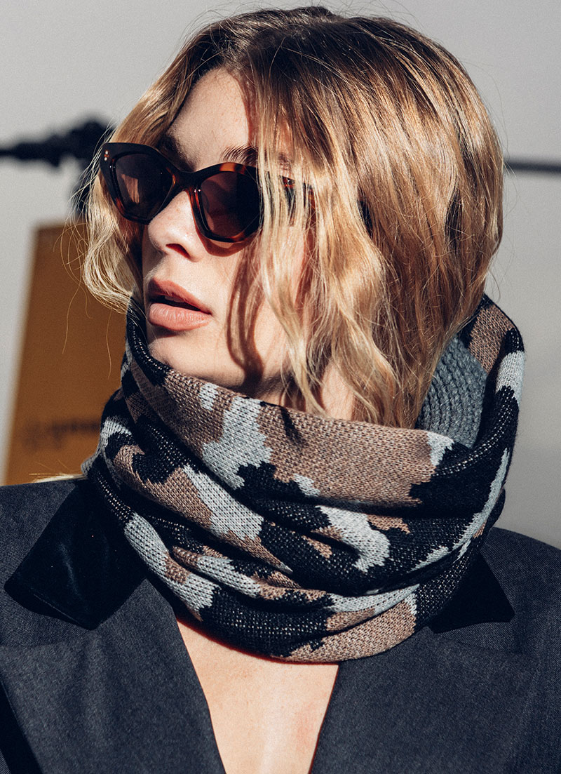 With its versatile, reversible design, the Soft Camo Weave Snood allows you to switch between a fashionable camo pattern and a simple, cozy knit. Exclusively patented by CONSTASY © 001467146, this snood is a perfect blend of understated style and functional comfort for your seasonal wardrobe.