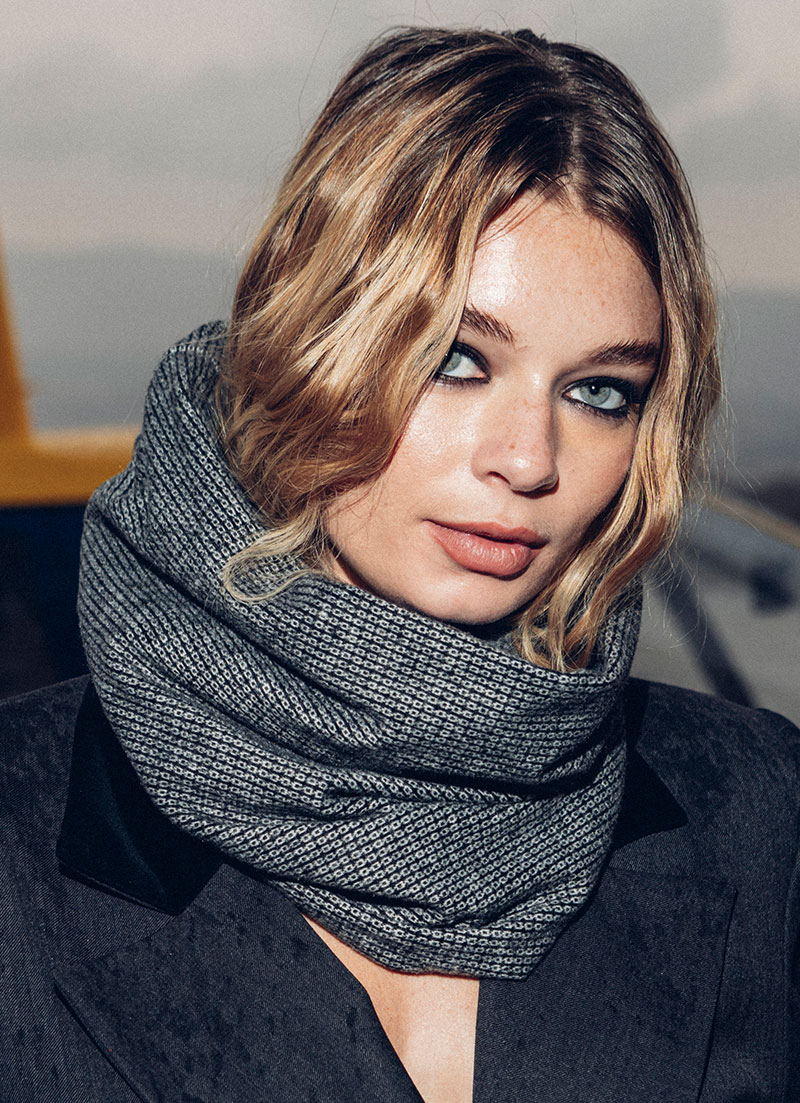 Exclusively patented by CONSTASY © 001467146, this snood is a timeless blend of textured beauty and functional warmth.